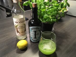 6cl Gin / 10-15 Blätter Basilikum / 2cl Zitronensaft / 2cl Zuckersirup