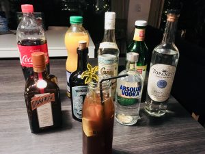2cl Gin / 2cl Cointreau / 2cl weißer Rum / 2cl Wodka / 2cl Tequila / 2cl Orangensaft / 2cl Zitronensaft / Cola